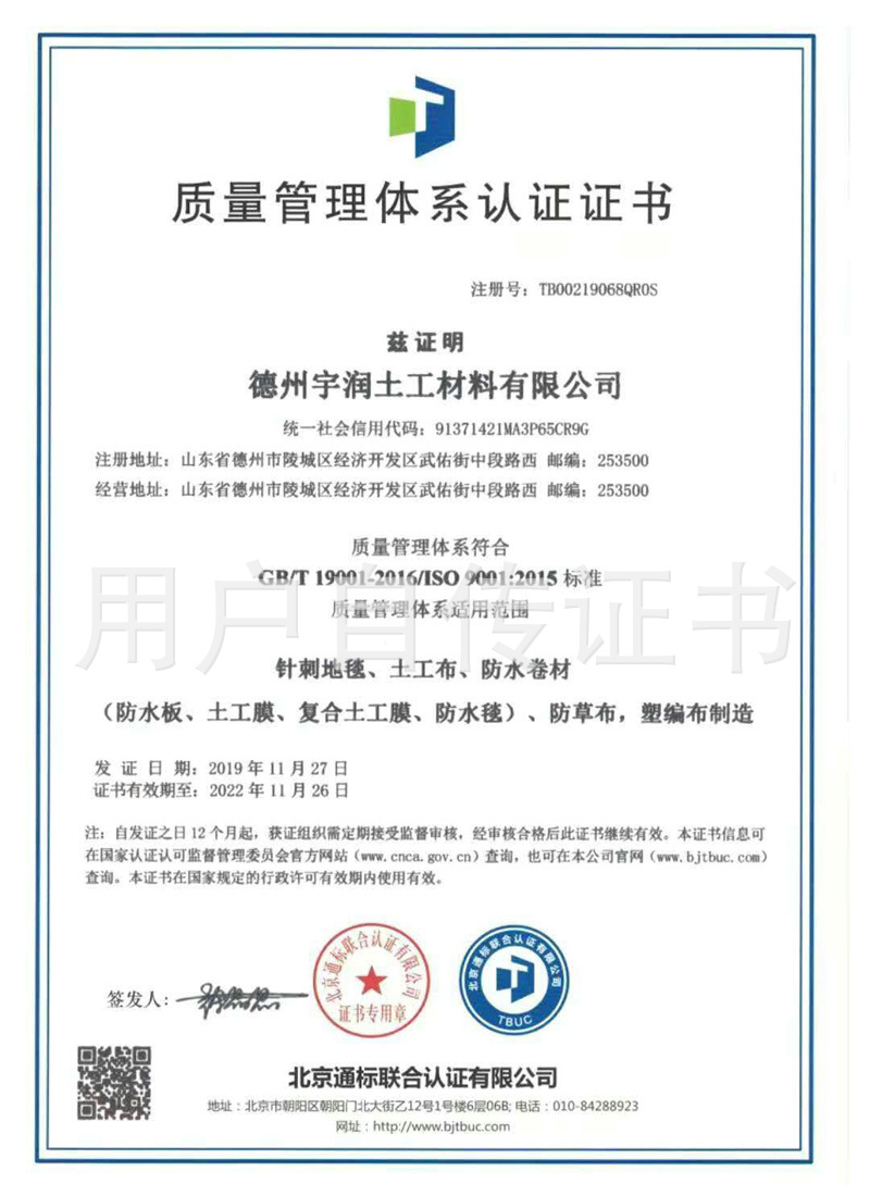 我们企业保证,签订合同,保质保量,明确价格,克重,使用年限,少货补发,损坏包赔。
